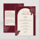 Cartão De Informações Deep Burgundy Floral Arch Wedding Timeline Card