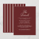 Deep Wine old money wedding details cards designed for a refined, estate-inspired celebration. This Deep Wine and Dried Rose details card features a heritage stripe backing paired with classic Old World calligraphy for a timeless editorial look. Inspired by 2026 Winecore and European manor aesthetics, it’s perfect for the traditional yet style-aware bride. Include hotel blocks, travel information, or wedding website details. Personalize to coordinate effortlessly with your suite.