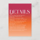 Inspirado no céu do crepúsculo, degradê ombre com tema de cores magenta viva, laranja e bege em grafia moderna, cartão de inclusão personalizado de casamento. Este cartão é facilmente editável. Se precisar de ajuda com a personalização deste produto ou precisar de mais produtos correspondentes para esta coleção, por favor me envie uma mensagem via Zazzle.