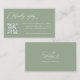 Este cartão de RSVP de casamento verde salvia apresenta letras de caligrafia elegantes e românticas, juntamente com um código QR e texto opcional no verso. Para uma personalização mais avançada deste design, clique no BOTÃO DE FERRAMENTA DE DESIGN AZUL acima!