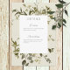 Este belo e delicado design de detalhes de casamento é elegante, mas simples. É constituído por uma caixa de texto branca rodeada por um delicado verde botânico num buquê macio sobre fundo verde macio. Esta design faz parte da coleção do Suite de Casamento Delicado Boho Greenery, criada pela Imprensa Simplesmente Farmhouse.