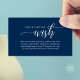Celebre o início de sua jornada junto com o nosso elegante marinho azul trabalhado "desejo de lua de mel" carta de convite de casamento. Apresentando uma sofisticada mistura de escrituras modernas e atração romântica, cada cartão é meticulosamente projetado para transmitir a essência do seu dia especial. Perfeitamente adequado para casais que buscam uma forma única de compartilhar seus sonhos de lua de mel, este cartão convida seus entes queridos a contribuir para experiências inesquecíveis. Seja aninhado em um envelope luxuoso ou apresentado ao lado de seus convites de casamento, nosso cartão adiciona um toque de encanto à sua celebração, prometendo memórias queridas que duram uma vida inteira. Projetado por TeeshaDerrick.