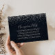 Este cartão de inclusão de desejo de lua de mel com caligrafia em confete prateado é perfeito para um casamento rústico. O design simples e elegante apresenta tipografia clássica e sofisticada com um fundo azul e confete prateado.