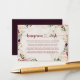 Este cartão de inclusão de desejo de lua de mel com caligrafia floral de verão rústica é perfeito para um casamento simples. O design apresenta flores de aquarela em tons de borgonha, rosa e rosa desbotado com folhas verdes em um fundo manchado de marrom.