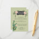 Este cartão de detalhes do cactus apresenta um cacto de pera picante com flores cor-de-rosa. Todos os detalhes importantes do casamento podem ser editados. As cores incluem verde, rosa, branco e preto.