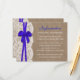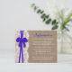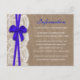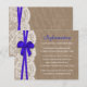 A coleção de casamento do arco azul rústico é um design impressionante que apresenta um adorável fundo de efeito de burvolta rústica com um romântico efeito de renda branca vintage e um espantoso arco azul. Estes Cartões Detalhados podem ser personalizados para a sua ocasião especial e tornariam a inserção perfeita para uma suíte de casamento, chá de panela, festa de noivado, festa de aniversário e muito, muito mais. Essas placas podem ser usadas para criar Cartões de Detalhes, Cartões de Informação Convidados, Cartões de Alojamento, Cartões de Direção, Registro de Presente ou Cartões de Poço de Vestir, bem como Cartões de Cerimônia e Recepção. *Observe que o Zazzle só vende convites impressos para que esses convites não tenham nenhum material real de arrombamento, rendas ou fita/ arco.