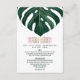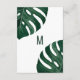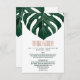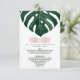 Folha monstera de queijo suíço, elegante, moderno e simples, verde-aquoso, cor tropical, em fundo branco, com impressão falsa tipografia de folha de ouro rosa, verão Cartão de informação de casamento. Este design clássico e sofisticado é perfeito para o formando clássico, na moda e moderno. Personalize com sua própria mensagem na frente e um monograma personalizado inicial no verso. Todas as impressão de fotos.