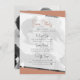 O moderno cartão design de detalhes do casamento de terracotta dos grupos temáticos apresenta sua foto como um elemento geométrico e pano de fundo. Sua foto de noivado favorita é a estrela deste design minimalista. É automaticamente convertido em preto branco e repetido no fundo ao lado de uma fita com sua data de casamento e "Apenas AMO!" A tipografia manuscrita emparelhada com o sotaque moderno em caracteres de bloco, o design. #CasualWedding