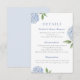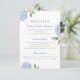 Este lindo cartão azul de cerimônia floral hydrangea apresenta flores azuis de cor aquática e seu texto personalizado. O reverso é uma faixa de aquarela fina, que pode ser apagada para uma parte traseira de cor sólida. Use a modelo para preencher suas informações. O recurso "Personalizar mais" pode ser usado para alterar a fonte (tamanho, estilo, cor) e adicionar mais linhas de texto, alterar o layout e adicionar texto ao verso.