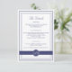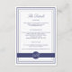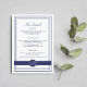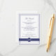 Os detalhes da recepção de informações de convidado de casamento com monogramas azuis e brancos do marinho elegante inserem o cartão em um estilo formal clássico.