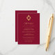 Este cartão de convite de casamento elegante na cor burgundy e dourado, com um ar vintage, tem acima do texto um brasão dourado falso vintage com um monograma, a partir das 2 iniciais da noiva e do noivo separadas por uma linha. O fundo é burgundy. Todo o texto tem uma cor dourada semelhante ao brasão dourado. Você pode incluir detalhes sobre o recebimento, acomodações, direções, lista de presentes, site do casamento e mais.