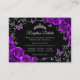Cartões de detalhes da recepção de Quinceanera roxo prata. Características, fonte de script, borboletas de brilho prateado, rosas de aquarela e tiara. Perfeito para uma celebração glamorosa de princesa elegante. Personalize com seus próprios detalhes.
