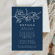 Cartão De Informações Detalhes de Casamento Azul-Marinho com Florais Des
