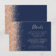 A borda esquerda deste cartão de detalhes de casamento moderno e elegante apresenta um design de brilho de pêssego falso. O texto personalizável combina escrita à mão em pêssego pálido, fontes copperplate e itálico em um fundo azul naval. O verso apresenta um design de brilho de pêssego correspondente.