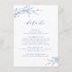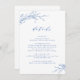 Folhas botânicas ilustradas à mão com escrita moderna e fonte clássica em azul e branco, Simples e elegante. Ótimo cartão de detalhes para casamento clássico moderno, casamento formal simples, casamento no jardim botânico elegante.