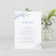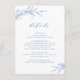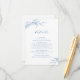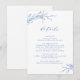 Folhas botânicas ilustradas à mão com escrita moderna e fonte clássica em azul e branco, Simples e elegante. Ótimo cartão de detalhes para casamento clássico moderno, casamento formal simples, casamento em jardim botânico elegante.