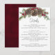 Este cartão de detalhes de casamento com tema de inverno apresenta um buquê rústico de folhagens em aquarela e pinhas, acentuado com bagas vermelhas de azevinho. No verso, há uma textura de aquarela burgundy. Encontre o restante do conjunto de convites de casamento e mais produtos correspondentes na coleção, ou envie-me uma mensagem pelo Zazzle Chat se precisar de ajustes de design ou mais produtos correspondentes.