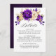 Cartão De Informações Detalhes de Casamento Botânico Roxo Real Dourado