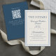Convide formalmente os convidados para o seu grande dia com este Cartão de Detalhes de Casamento com Faixa Azul e Letra Old Money! Este design apresenta fonte manuscrita e faixas azuis atemporais. Personalize seus detalhes e o código QR personalizado no verso no Zazzle! Tem um pedido personalizado? Me envie uma mensagem!