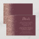 A borda esquerda deste cartão de detalhes de casamento moderno e elegante apresenta um design de glitter falso em dourado rosa. O texto personalizável combina escrita à mão em rosa pálido, fontes copperplate e itálico em um fundo burgundy escuro. O verso apresenta um design correspondente em burgundy escuro e glitter dourado rosa.