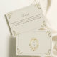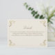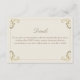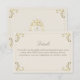 Cartão elegante com detalhes de casamento barroco em tons de dourado e creme bege, apresentando floreios ornamentados vitorianos e um design de monograma no verso. Perfeito para compartilhar informações importantes do casamento, como site de RSVP, detalhes da recepção, acomodações e direções. Um cartão de inserção atemporal que combina com conjuntos de convites de casamento barroco, vintage e antigo.