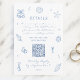 Faça seus convites de casamento se destacarem com este Cartão de Gabinete de Código QR de Código de Casamento Costeiro Azul Desenhado pela Mão Personalizada. Perfeito para casamento azul empoeirado, tema de casamento azul, ou casamento azul claro, este cartão adiciona um toque caprichoso ao seu casamento costeiro. Apresentando conchas e detalhes inspirados no oceano, é ideal para amantes de casamentos de praia e ideias de casamento costeiro. Uma mistura de convites para casamento, cartões únicos de convite para casamento e convites feitos à mão — excelente para casais modernos que procuram modelos de convite para casamento na moda e ideias de convites para casamento criativos. Um casamento azul pronto!