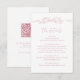 O cartão de detalhes do casamento elegante apresenta um laço de fita desenhado à mão com fontes modernas de texto manuscrito em rosa suave, com código QR no verso. doce e simples. Ótimo para casamento romântico moderno, casamento único divertido e caprichoso, casamento casual elegante.