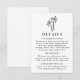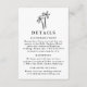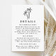 Compartilhe informações essenciais de casamento com seus convidados usando este cartão de detalhes moderno, com uma palmeira preta desenhada à mão no topo de um fundo branco. Perfeito para casamentos tropicais, costeiros ou de destino, esta design minimalista oferece espaço para incluir acomodações de hotel, detalhes de recepção, seu site de casamento e muito mais. Uma elegante e prática adição à sua suíte de convite para casamento.