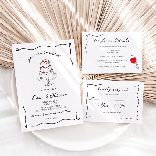 Hand Drawn Cherry Themed Wedding SuiteCriado por MOONDAISY STUDIO