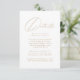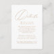Cartões de detalhes de casamento simples e elegantes com "Detalhes" em uma fonte de caligrafia moderna dourada com fundo branco (ou cor de sua escolha). Personalize os cartões de inclusão minimalistas adicionando os detalhes do seu casamento em letras douradas. Projetados para combinar com nossa coleção de casamento Modern Elegance.