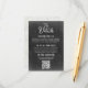 Layout estilizado do quadro de controle com código QR na frente. Leve madeira de celeiro de meteoros nas costas. Esta versátil carta pode complementar uma variedade de designs e estilos de casamento, mas é especialmente agradável para uma celebração do estilo fazenda rusticado do país. ・ Navegue na Coleção de Casamentos de Colheita abaixo para ver todos os produtos coordenadores neste tema de design, incluindo Salvar as Datas, Cartões de mesa e muito mais!
