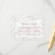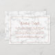 Um cartão moderno e elegante de cerimônia de casamento com as palavras "Detalhes do Casamento" em um falso roteiro de ouro rosa e suas informações abaixo, cercado por uma fronteira, sobre uma cinza e fundo de mármore branco. Este design e chic é excelente para uma celebração no inverno. Use essas placas de gabinete para fornecer instruções e outros detalhes importantes que seus convidados possam precisar conhecer, como acomodações de hotel, estacionamento, informações de vaivém, etc.
