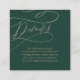 Este cartão de cerimônia de detalhes do código QR da caligrafia verde romântica é perfeito para um casamento simples. O clássico design moderno apresenta espirais de rico e turbilhões brancos com elegantes e elegantes champanhes de ouro falso. Nota: Este design não apresenta folha de ouro real. É um gráfico de alta qualidade feito para se parecer com folhas de ouro.