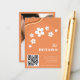 Esses cartões vibrantes e coloridos, com arco laranja, flores margaridas, tipografia retrô, foto personalizada, código QR & texto, constituiriam uma maravilhosa adição aos seus suprimentos de casamento. Adicione facilmente suas próprias informações clicando na opção "personalizar".