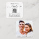 Chic: O cartão de cercado quadrado detalhado com "detalhes" em um elegante roteiro moderno com baloiços. Insira o endereço do seu site de casamento para criar um código QR para os convidados pesquisarem todos os detalhes, como instruções e acomodações, e para RSVP on-line. O verso mostra a sua foto sobreposta com os seus primeiros nomes e a data do casamento.