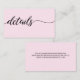 Cartão De Informações Detalhes de casamento do Script Chic preto e rosa