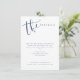 Os cartões de detalhes de casamento modernos e simples apresentam caligrafia manual em azul marinho e branco, elegante e sofisticado.