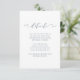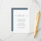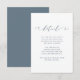 Cartão de detalhes para convidados de casamento em azul poenta e branco com bela caligrafia.