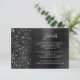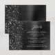 Este cartão de detalhes de casamento moderno e elegante apresenta uma imagem de fundo em metal preto fosco salpicada com brilho de diamante falso. Personalize o texto branco, com o título "Detalhes" em letra cursiva estilosa e o restante do texto em fonte sans serif. O verso apresenta um design correspondente em metal preto fosco e brilho falso.