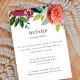 Este cartão de acompanhamento de casamento elegante apresenta um lindo buquê de dália em aquarela combinado com tipografia inspirada no vintage. Juntos, esses elementos criam um design rústico, mas elegante, que seria perfeito para um casamento romântico em qualquer época do ano. Veja a coleção para mais itens deste conjunto de casamento...