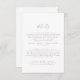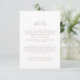 Este moderno roteiro de ouro rosa é o cartão mínimo de detalhes de casamento perfeito para um casamento minimalista. O simples design cor-de-rosa-rosa-rosa-claro apresenta uma tipografia exclusiva de letras industriais com estilo boho moderno. Personalizável em qualquer cor. Mantenha o design mínimo e elegante, como está, ou personalize-o adicionando seus próprios gráficos e trabalhos de arte.