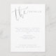 Cartões de detalhes de casamento modernos e simples apresentam letra manuscrita em cor cinza prata, elegante e sofisticado.