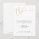 Cartões de detalhes de casamento modernos simples com letra cursiva manuscrita em cor de folha dourada falsa, elegantes e sofisticados.