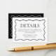 Eleve seus convites de casamento com nosso Cartão de Acréscimo de Código QR de Detalhes de Casamento Preto e Branco Ondulado Personalizado. Perfeito para convites de casamento modernos, este cartão combina convites de casamento elegantes com um design minimalista, dando um toque de classe atemporal. Ideal para aqueles que buscam convites de casamento sofisticados ou convites de casamento clássicos, esta peça simples, porém única, apresenta convites de casamento preto e branco com um sentimento de casamento de dinheiro antigo. Descubra ideias de convites de casamento que redefinem a sofisticação!