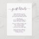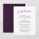 Forneça aos seus convidados detalhes importantes com este cartão de inclusão de casamento roxo elegante com uma fonte de letra moderna. Itens correspondentes disponíveis.