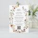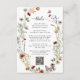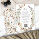 Cartão de Enclausuramento com Detalhes de Boho Silvestre. Este cartão de enclausuramento vertical combina charme rústico com conveniência moderna, apresentando uma grinalda floral desenhada à mão em tons suaves de ferrugem, dourado e verde natural emoldurando os detalhes do seu evento e um código QR para fácil acesso ao seu site de casamento. Situado em um fundo branco com elegante escrita preta, o verso é finalizado com um padrão de flores silvestres que adiciona profundidade e coesão. Um toque elegante e útil para a celebração de hoje - personalize-o para combinar com a sua visão.