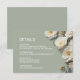 Rosas brancas 3D em um cartão de detalhes de fundo verde sage