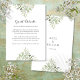Com delicadas folhas de verde aquoso pintadas com aquarela, este cartão de informações para convidados com detalhes botânicos elegantes pode ser personalizado com as informações dos seus convidados. Desenhado por Thisisnotme©