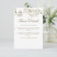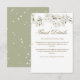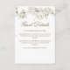 Cartão de detalhes de informações do convidado com flores brancas elegantes e bonitas, apresentando uma moldura delicada de flores da primavera com detalhes de informações do convidado em letras douradas elegantes. Criado por Thisisnotme©