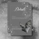 Entre no reino encantador dos detalhes do nosso cartão de casamento de Halloween, onde o amor encontra mistério glamoroso em uma celebração encantadora. Contra um pano de fundo de cinza carvão enfeitiçante, este design define um tom deslumbrante e sombrio para o seu dia especial. Um morcego de carvão com asas abertas assenta sobre os detalhes do seu casamento, rodeado por um aglomerado de diamantes soltos cintilantes, adicionando glamour à beleza sombria do design. Capture o espírito do Halloween e prepare o palco para um casamento tão assustadoramente lindo quanto inesquecível. Escolha o nosso conjunto de convite de casamento de Halloween para embarcar numa viagem para as sombras e criar memórias que durarão toda a vida. Criado por Simply Farmhouse Press.